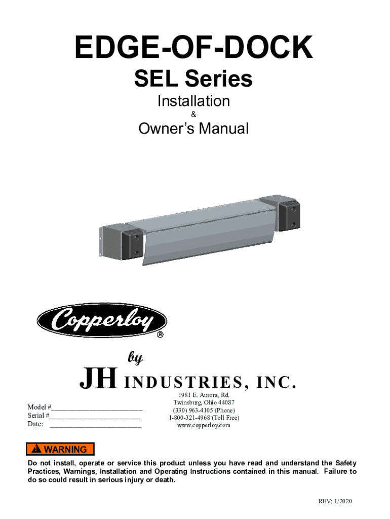 EDGEOFDOCK SEL Series Installation owners Manually I N D U S T R I E S, I N C. Model #___ Serial #___ Date: ___ !1981 E. Aurora, Rd. Twins burg, Ohio 44087 (330) 9634105 (Phone) 18003214968 (Toll