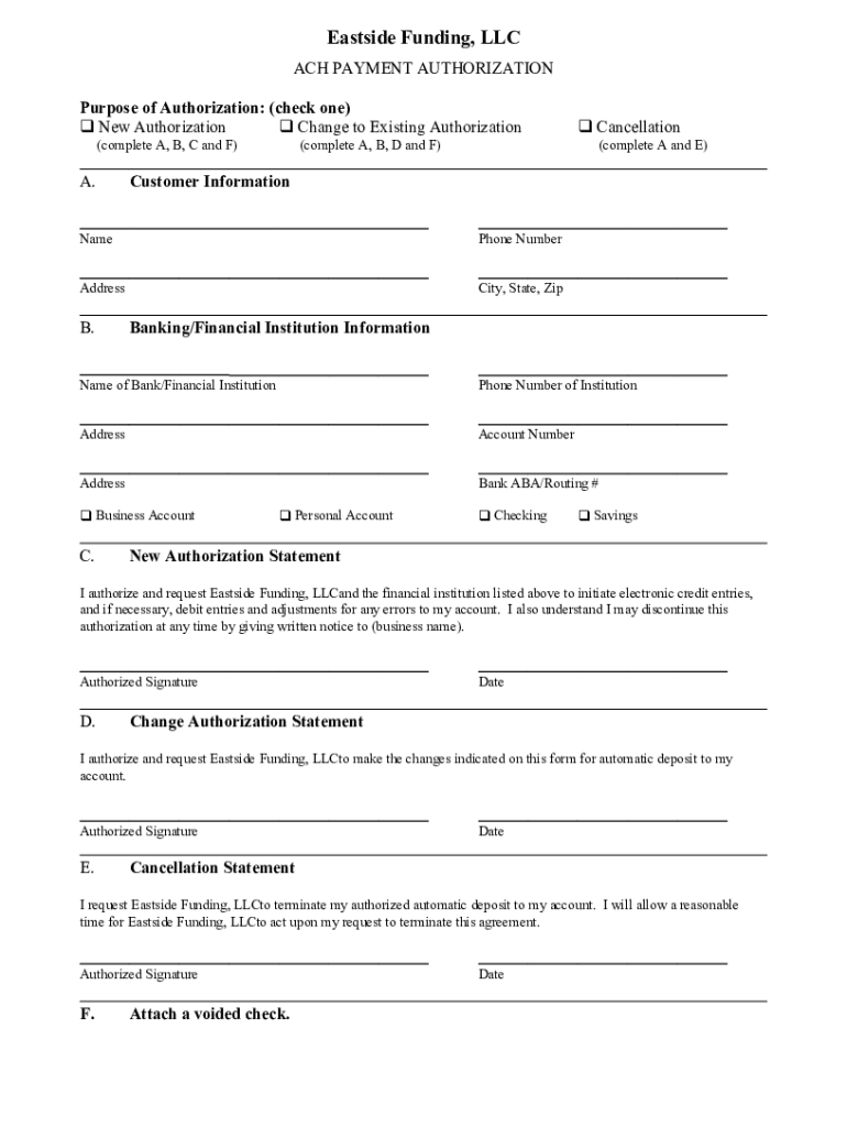 Get the free What Is Required for ACH Authorization Form?