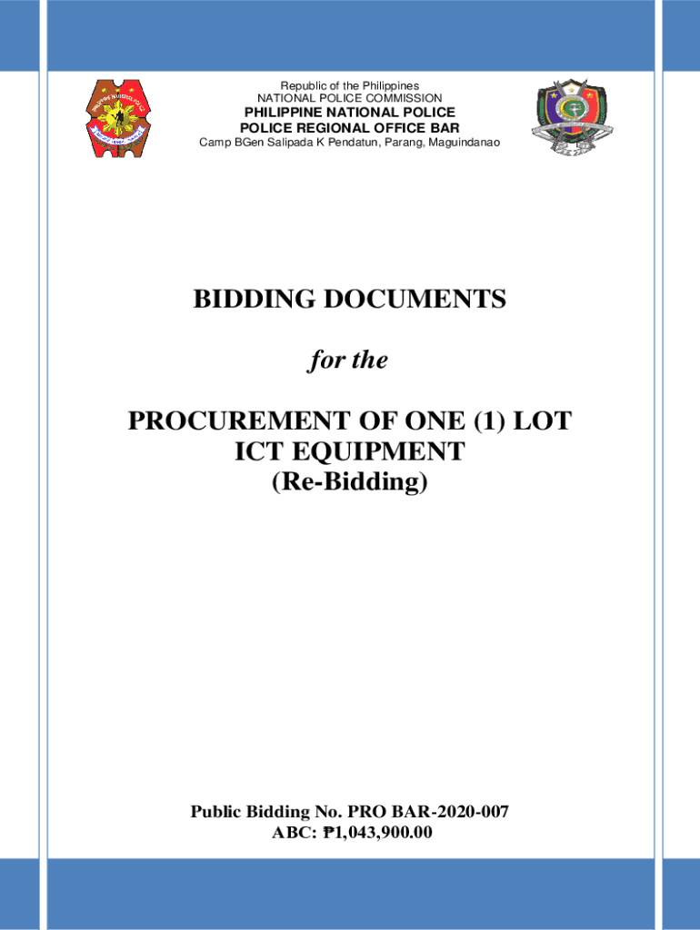 Republic of the Philippines NATIONAL POLICE COMMISSIONPHILIPPINE NATIONAL POLICE REGIONAL OFFICE BAR Camp Been Salad K Pentagon, Padang, MaguindanaoBIDDING DOCUMENTS for the PROCUREMENT OF ONE (1)