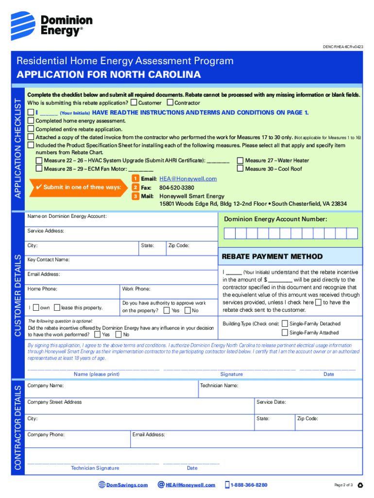 Residential Home Energy Assessment Program Rebate Application for North Carolina DENCRHEA6CRv0423INSTRUCTIONS TO APPLY 1CHECK ELIGIBILITY FOR THE PROGRAM3SUBMIT A REBATE APPLICATION Submit a rebate