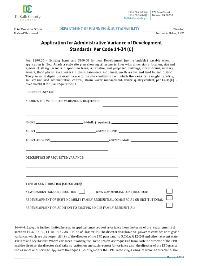 404.371.2155 (o) 404.371.4556 (f) DeKalbCountyGa. Chief Executive Officer Michael ThurmondDEPARTMENT OF PLANNING & SUSTAINABILITY178 Sam's Street Decatur, GA 30030Director Andrew A. Baker, Misapplication