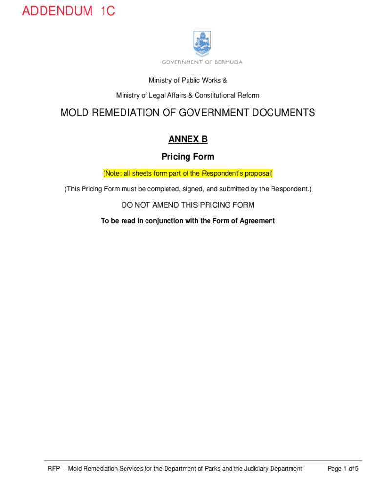 ADDENDUM 1CMinistry of Public Works & Ministry of Legal Affairs & Constitutional Reformed REMEDIATION OF GOVERNMENT DOCUMENTS ANNEX B Pricing Form (Note: all sheets form part of the Respondents proposal)