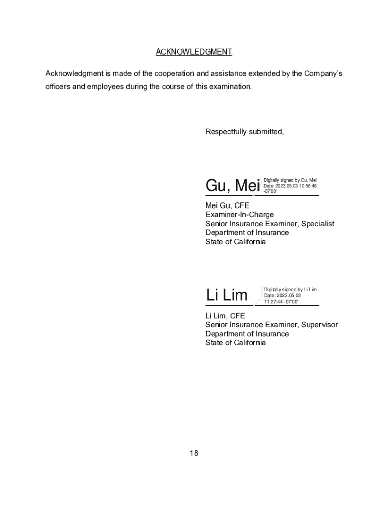 REPORT OF EXAMINATION OF THE KAISER PERMANENT INSURANCE COMPANY AS OF DECEMBER 31, 2021Filed on May 3, 2023TABLE OF CONTENTS PAGE SCOPE OF EXAMINATION ............................................................................................