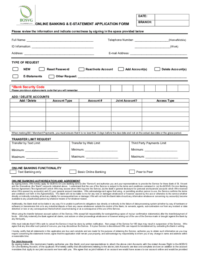 DATE: BRANCH:ONLINE BANKING & STATEMENT APPLICATION Formulas review the information and indicate correctness by signing in the space provided below Full Name: ___Telephone Number: ___(Home/Mobile)ID