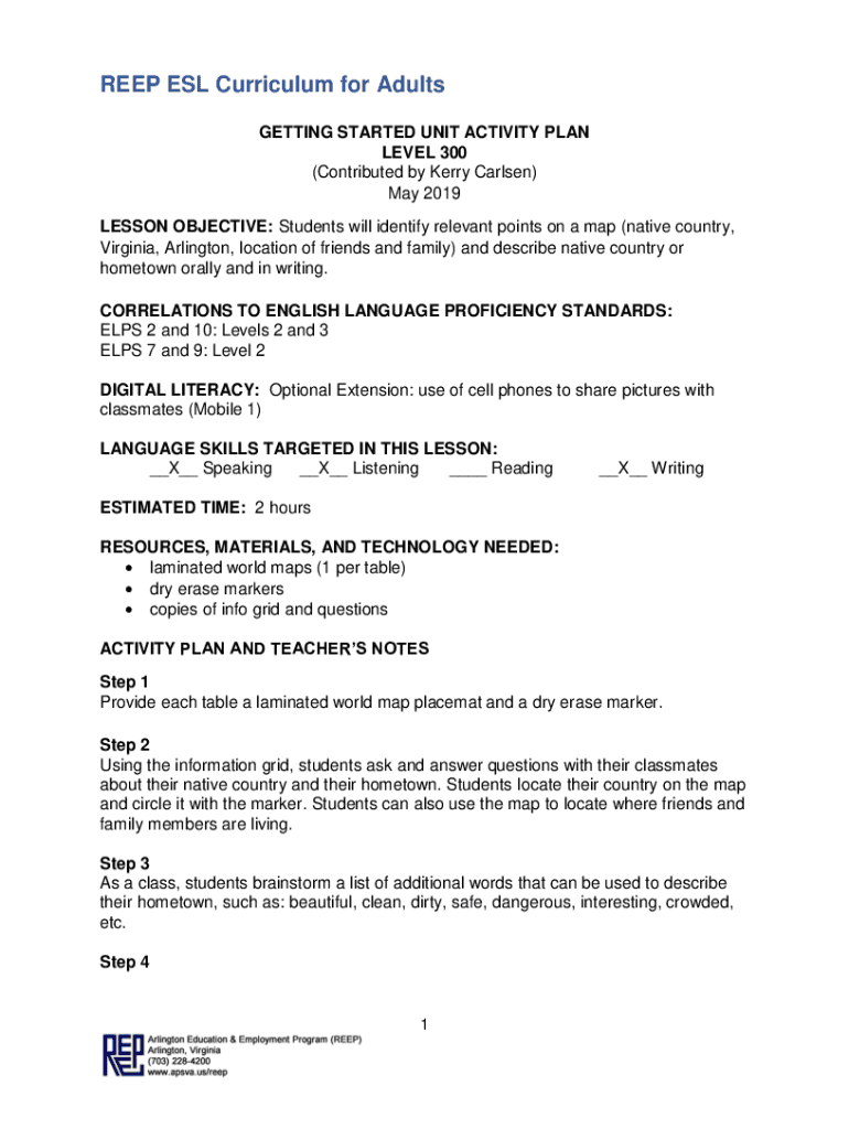 Get the free GETTING STARTED UNIT ACTIVITY PLAN