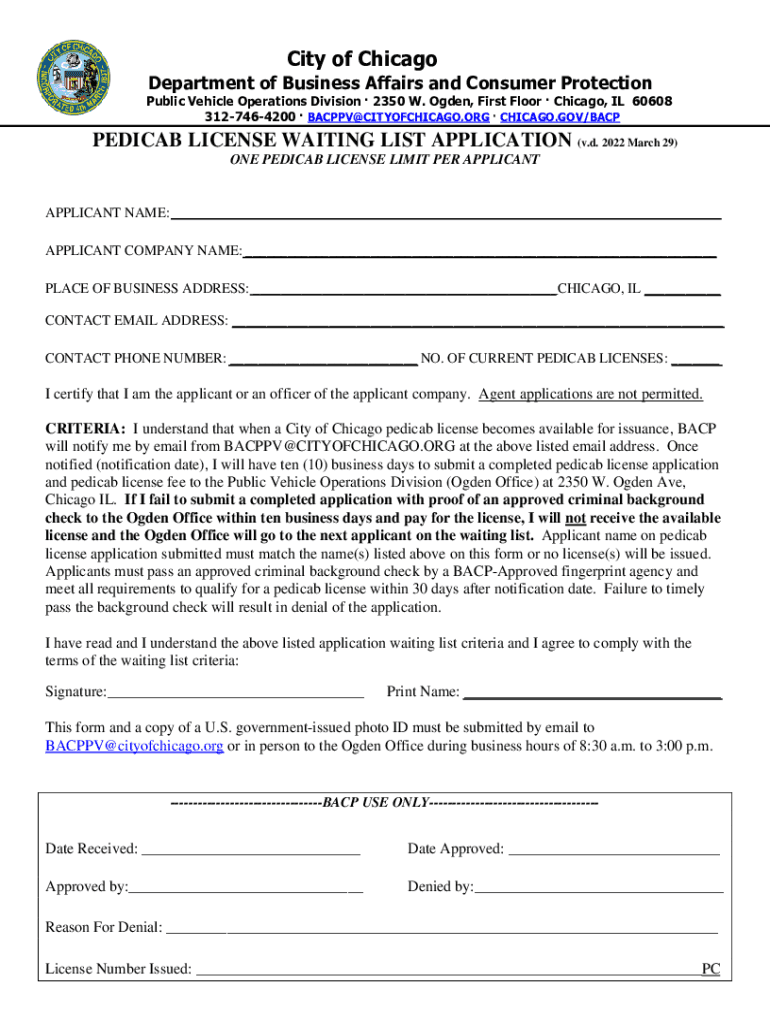 3127464200 BACPPV@CITYOFCHICAGO.ORG CHICAGO.GOV/BACPPEDICAB