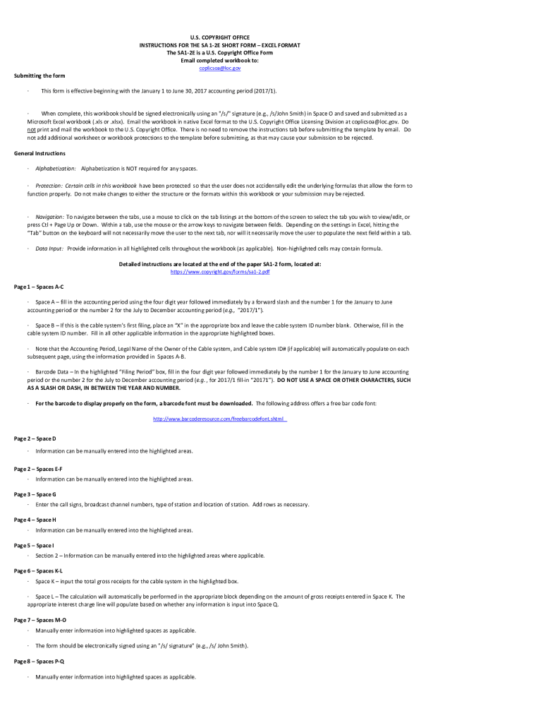 U.S. COPYRIGHT OFFICE INSTRUCTIONS FOR THE SA 12E SHORT FORM EXCEL FORMAT The SA12E is a U.S. Copyright Office Form Email completed workbook to: coplicsoa@loc.govSubmitting the form This form is effective