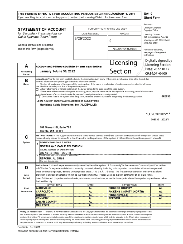Entities that provide cable television services and meet certain revenue or operational thresholds are required to file reports or documentation relevant to Northland Cable Television Inc.