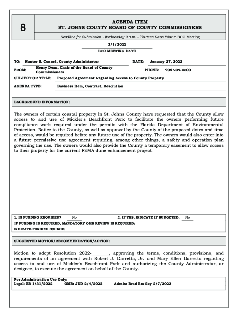ST. JOHNS COUNTY BOARD OF COUNTY COMMISSIONERS8Deadline for Submission Wednesday 9 a.m. Thirteen Days Prior to BCC Meeting