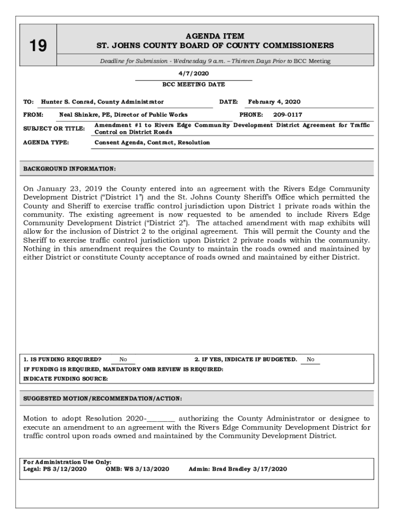 ST. JOHNS COUNTY BOARD OF COUNTY COMMISSIONERS19Deadline for Submission Wednesday 9 a.m. Thirteen Days Prior to BCC Meeting