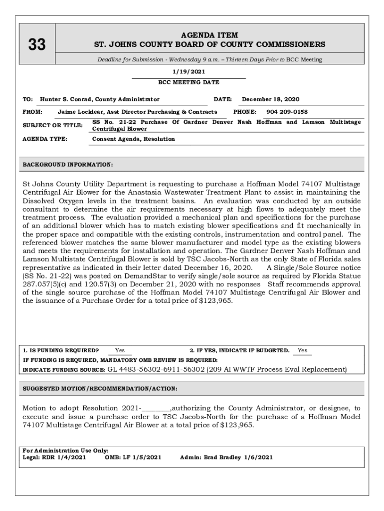 ST. JOHNS COUNTY BOARD OF COUNTY COMMISSIONERS33Deadline for Submission Wednesday 9 a.m. Thirteen Days Prior to BCC Meeting
