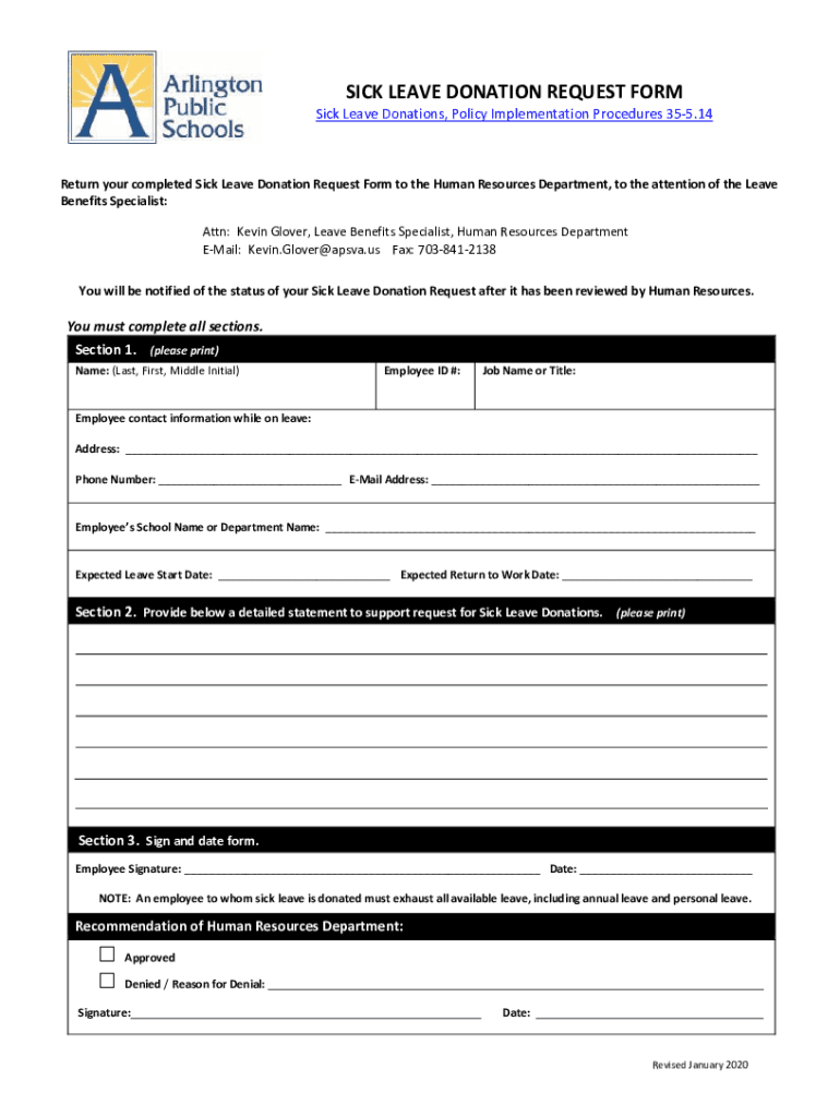 SICKLEAVEDONATIONREQUESTFORM SickLeaveDonations,PolicyImplementationProcedures355.14ReturnyourcompletedSickLeaveDonationRequestFormtotheHumanResourcesDepartment,totheattentionoftheLeave BenefitsSpecialist: