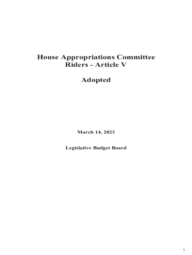 House Appropriations Committee Riders Article V Adopted March 14, 2023, Legislative Budget Board1Proposed Rider Winery Permit StudyOverview Add rider to direct the Alcoholic Beverage Commission to