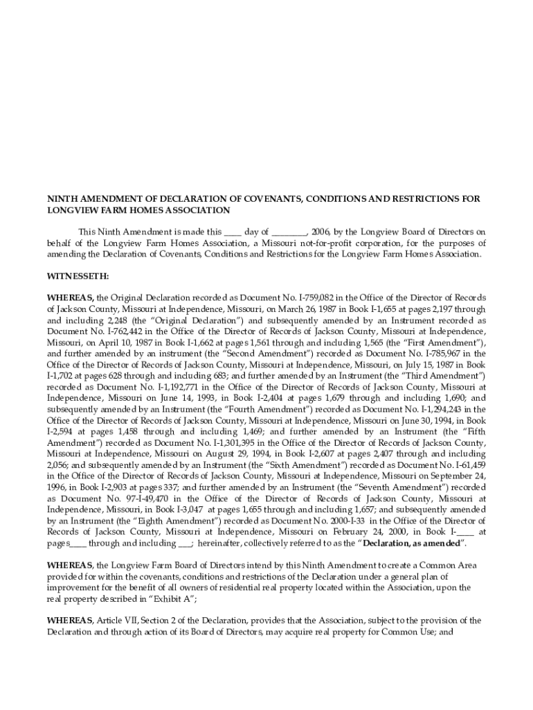 Get the free NINTH AMENDMENT OF DECLARATION OF COVENANTS, CONDITIONS AND RESTRICTIONS FOR LONGVIE...