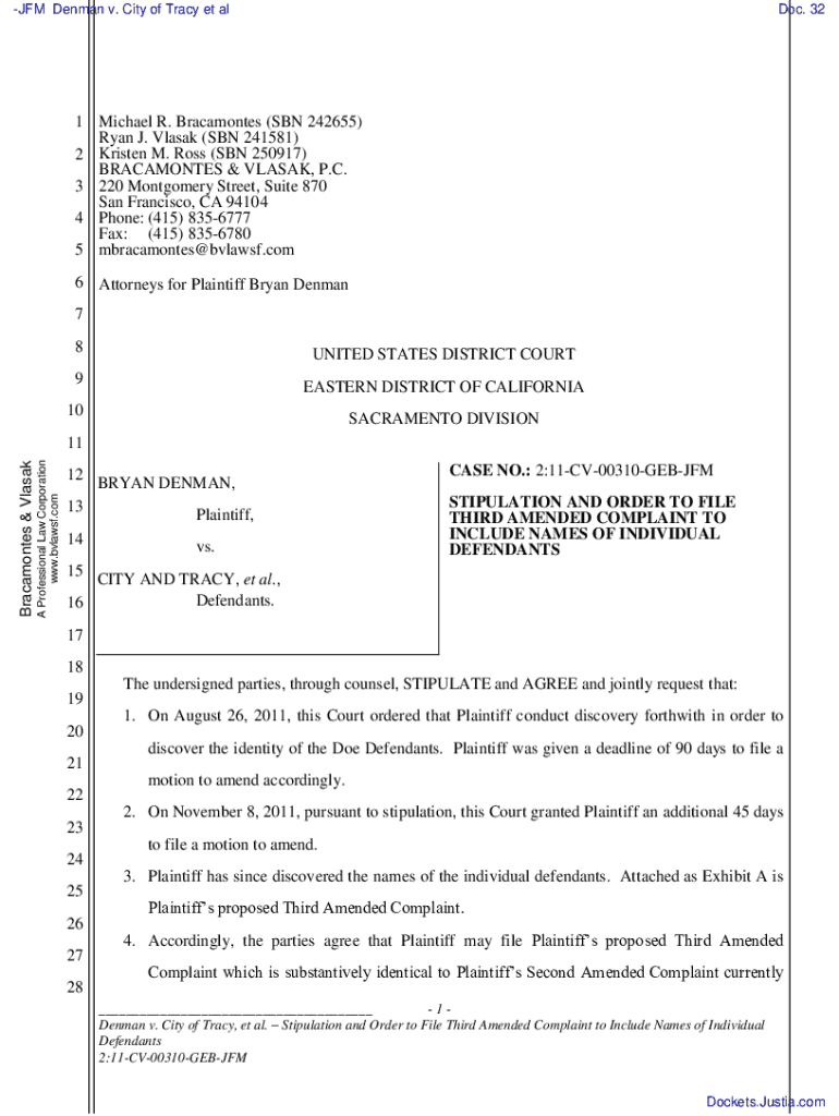 Get the free STIPULATION and ORDER signed by Judge Garland E. Burrell, Jr on 12/9/11 ORDERING tha...