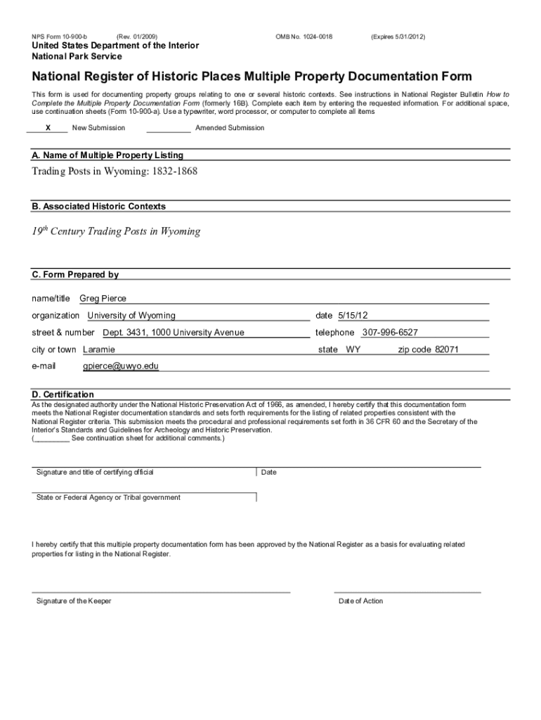 NPS Form 10900b(Rev. 01/2009)OMB No. 10240018(Expires 5/31/2012)United States Department of the Interior National Park ServiceNational Register of Historic Places Multiple Property Documentation Form