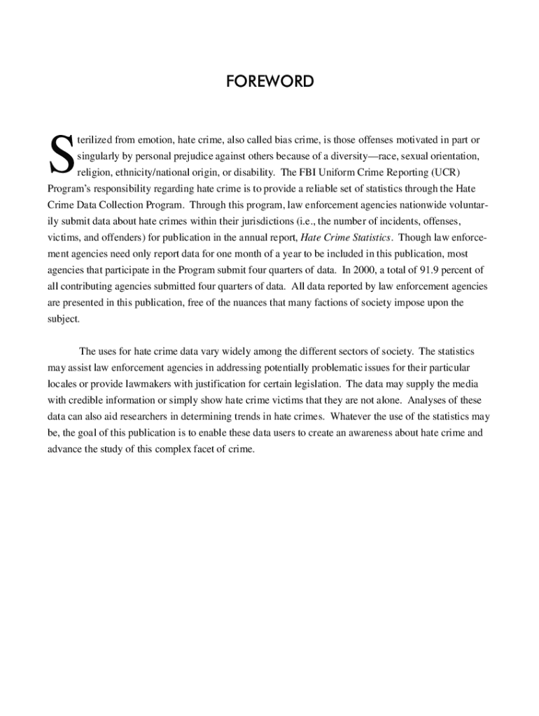 FOREWORDSterilized from emotion, hate crime, also called bias crime, is those offenses motivated in part or