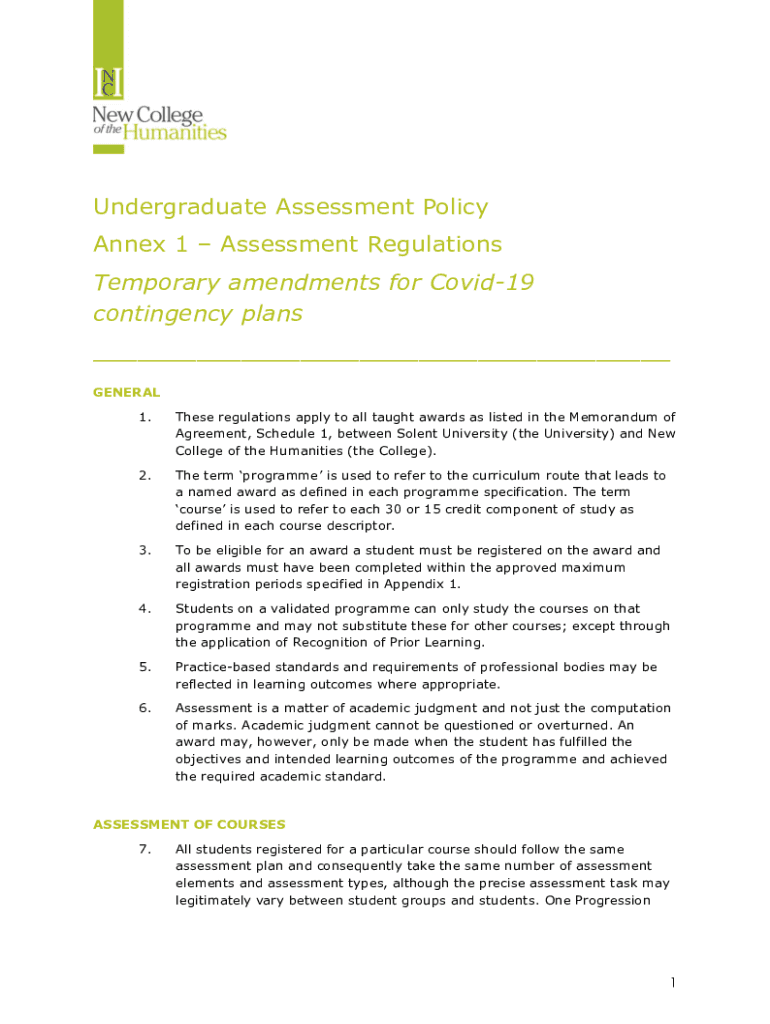 Get the free Undergraduate Assessment Policy Annex 1