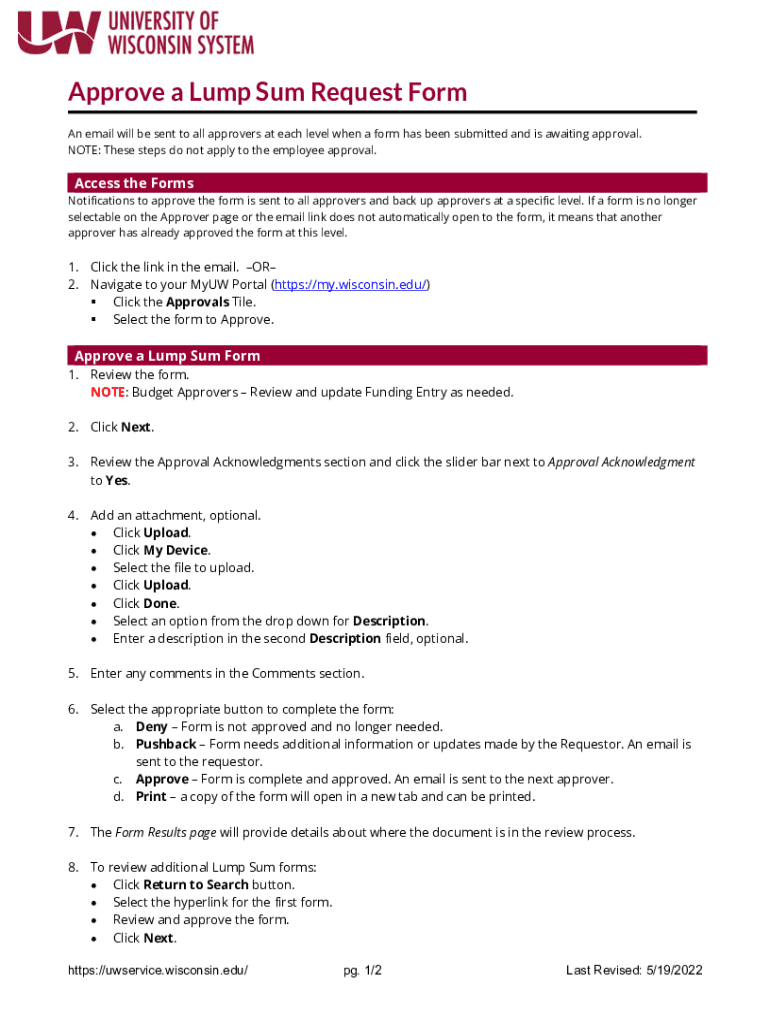 Get the free Approve a Lump Sum Request Form - uwservice wisconsin