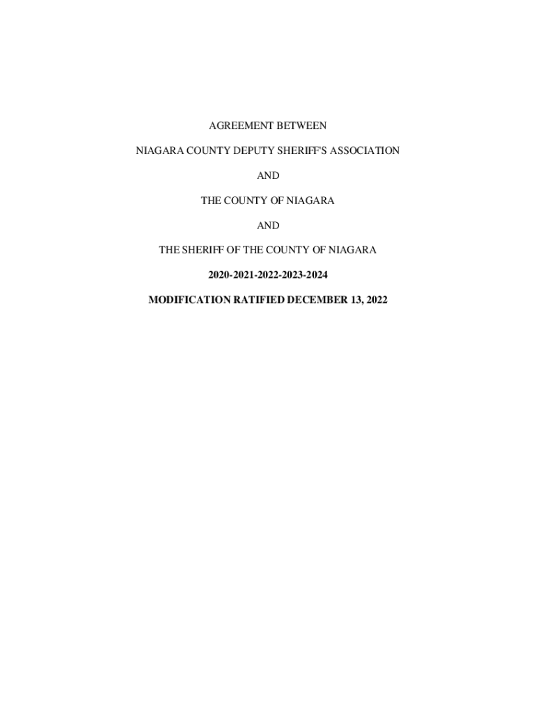 AGREEMENT BETWEEN NIAGARA COUNTY DEPUTY SHERIFF\'S ASSOCIATION AND THE COUNTY OF NIAGARA AND THE SHERIFF OF THE COUNTY OF NIAGARA 20202021202220232024 MODIFICATION RATIFIED DECEMBER 13, 2022NIAGARA