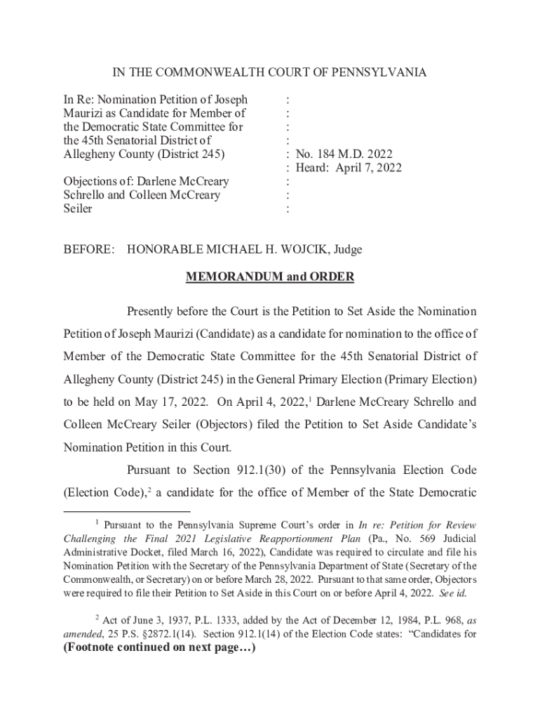 Get the free Nomination Petition of Joseph : Maurizi as Candidate for ...