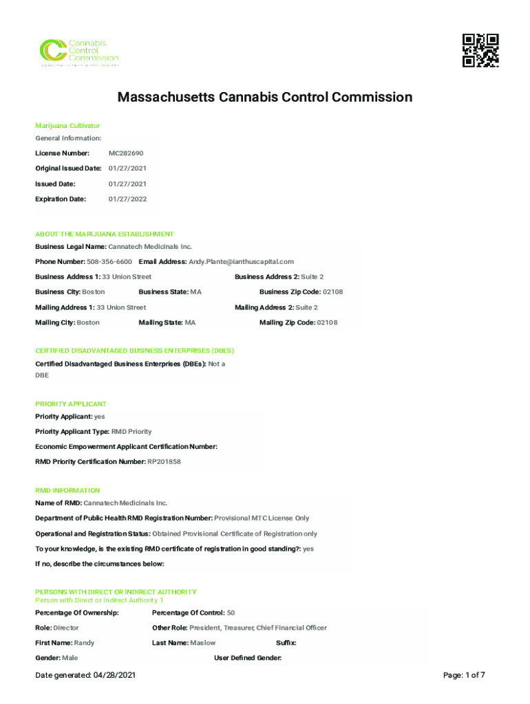 License Number:MC282690Original Issued Date: 01/27/2021