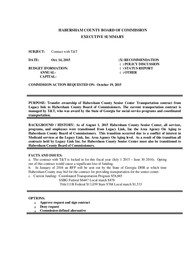 EXECUTIVE SUMMARYSUBJECT:Contract with TITRATE:Oct. 14, 2015BUDGET INFORMATION: