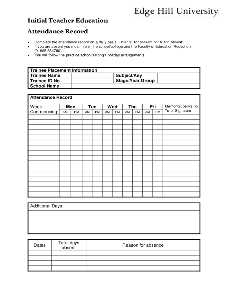 Fill out your professional practice attendance form online with pdfFiller!
