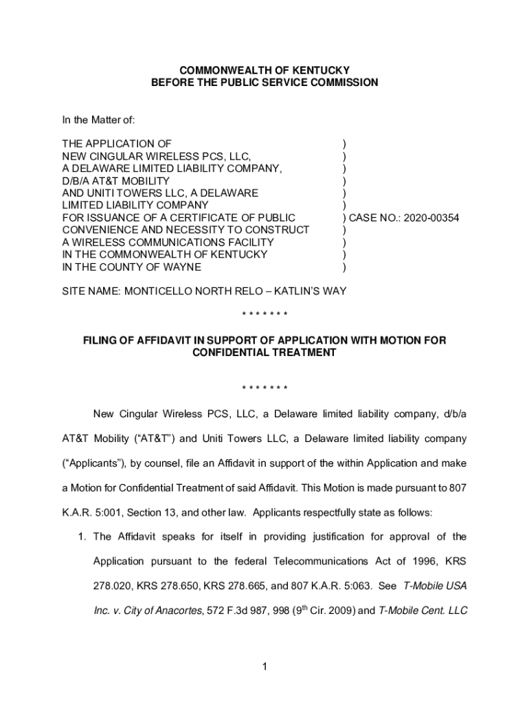 COMMONWEALTH OF KENTUCKY BEFORE THE PUBLIC SERVICE COMMISSION In the Matter of: THE APPLICATION OF NEW SINGULAR WIRELESS PCS, LLC, A DELAWARE LIMITED LIABILITY COMPANY, D/B/A AT&T MOBILITY AND UNITS