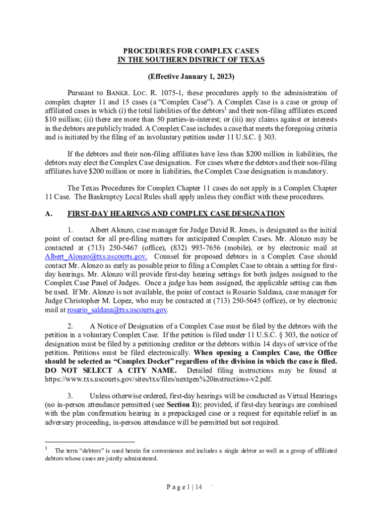 Get the free Proposed New Procedures in Complex Chapter 11 Cases