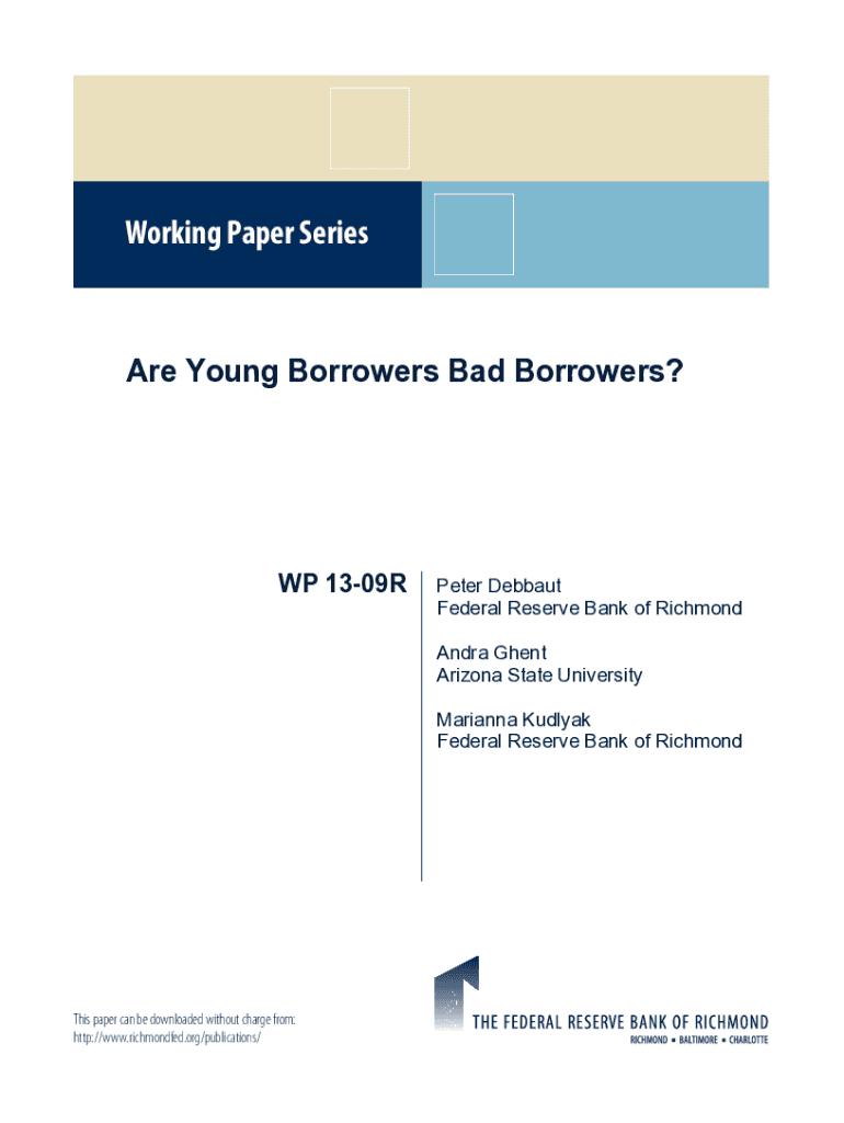 Working Paper Series Young Borrowers Bad Borrowers?WP 1309RPeter Debut