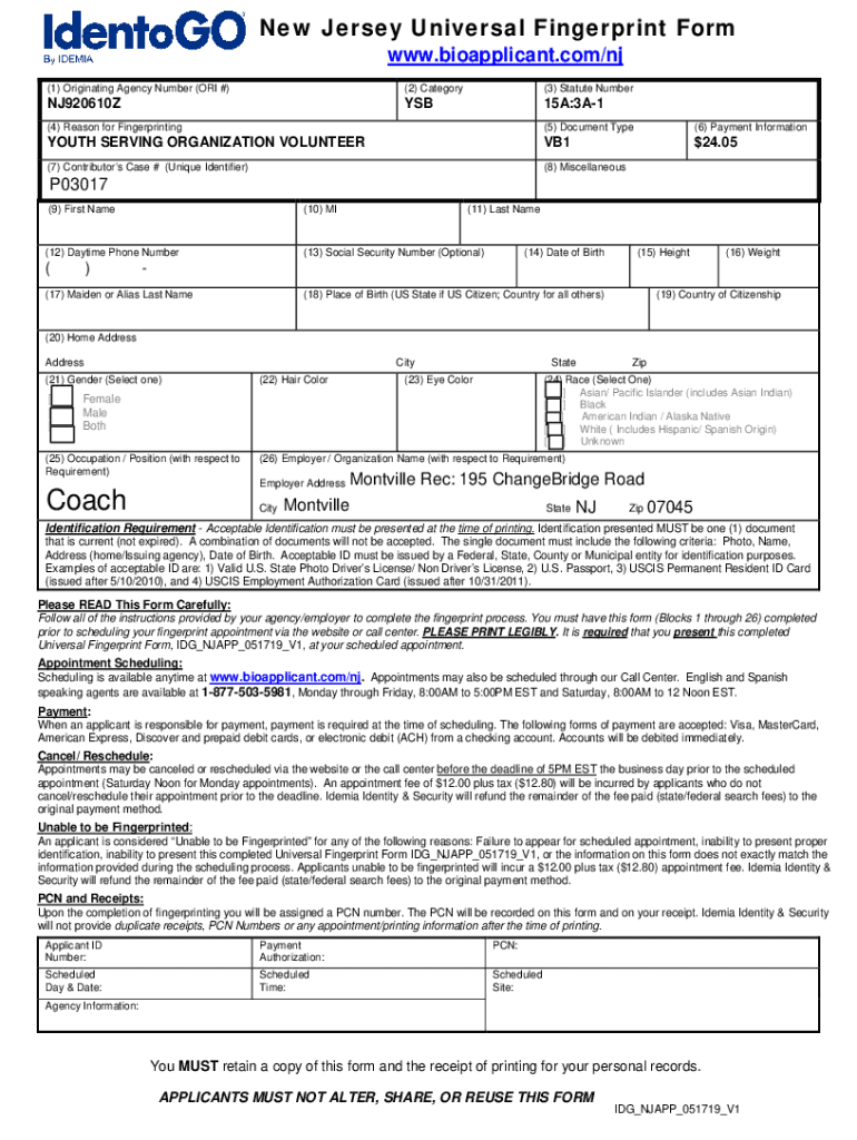 Get the free New Jersey Universal Fingerprint Form Appointment ...