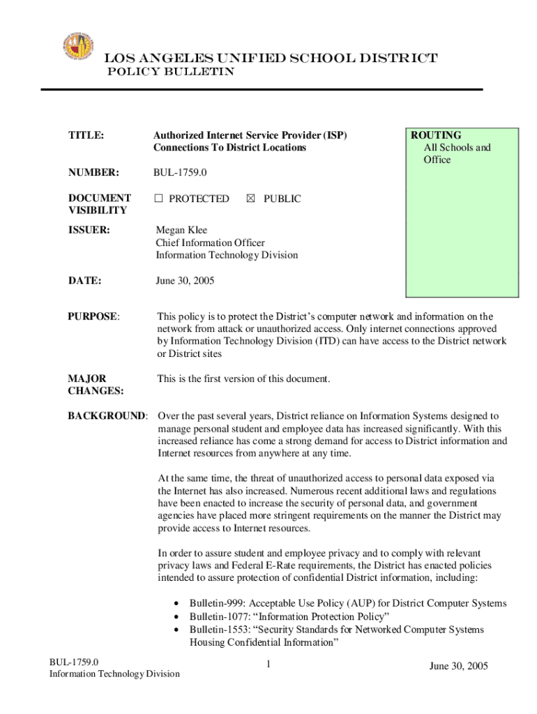 POLICY BULLETINTITLE:Authorized Internet Service Provider (ISP)