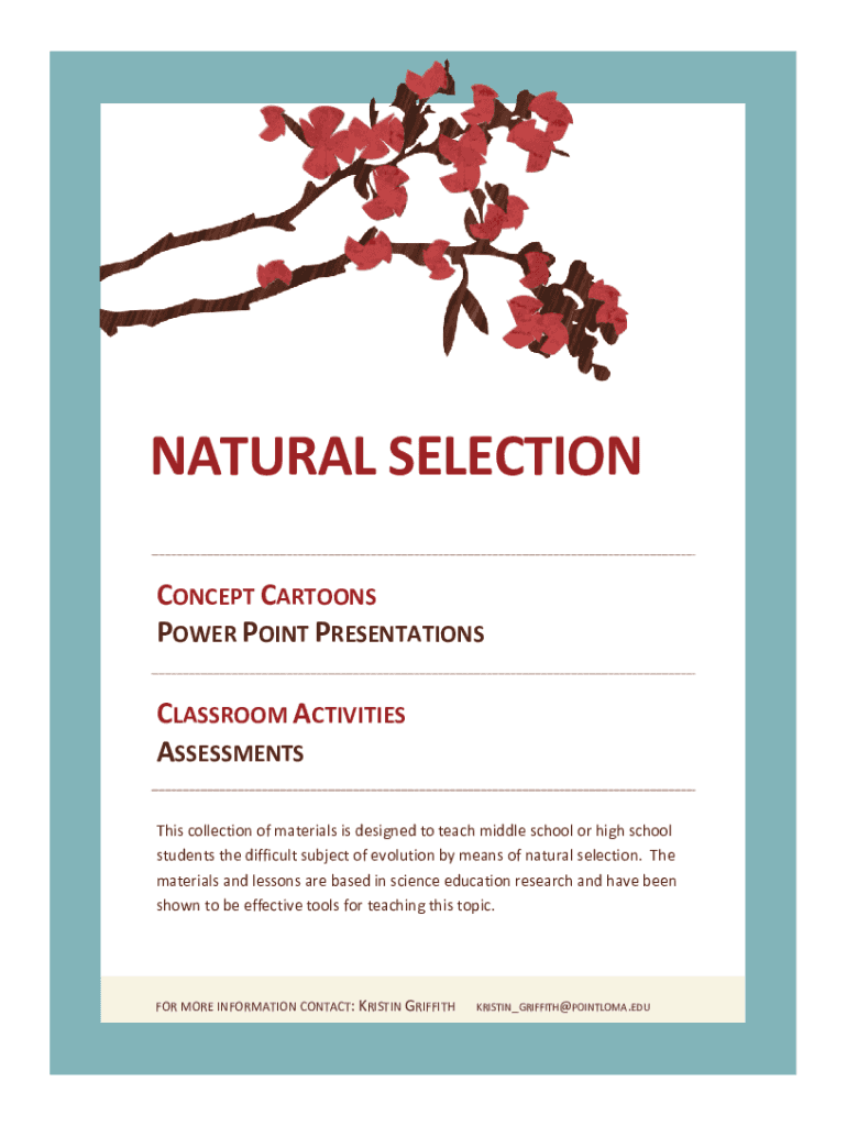 NATURAL SELECTION CONCEPT CARTOONS PowerPoint PRESENTATIONS CLASSROOM ACTIVITIES ASSESSMENTS This collection of materials is designed to teach middle school or high school students the difficult subject
