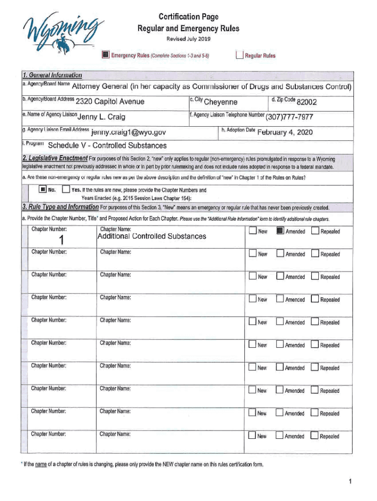 Certification Page Regular and Emergency Rules Revised July 2019Ii] Emergency Rules /Complete Sac/ions 13 and 56/D Regular Rules1. General Information a. Agency/Board NameAttorney General (in her