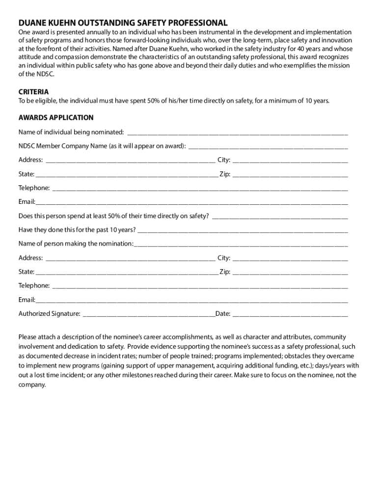Get the free NDSC Announces This Year's Safety & Health Award ...