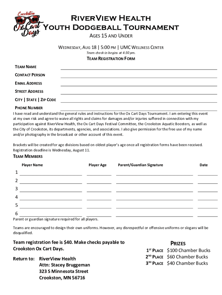 Team checking begins at 4:30 pm. TEAM REGISTRATION FORMER NAME