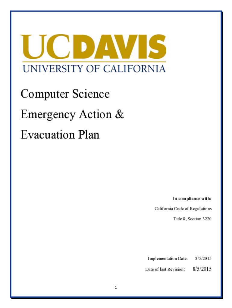 Computer Science Emergency Action & Evacuation Plain compliance with: California Code of Regulations Title 8, Section 3220Implementation Date: Date of last Revision:18/5/20158/5/2015Introduction An