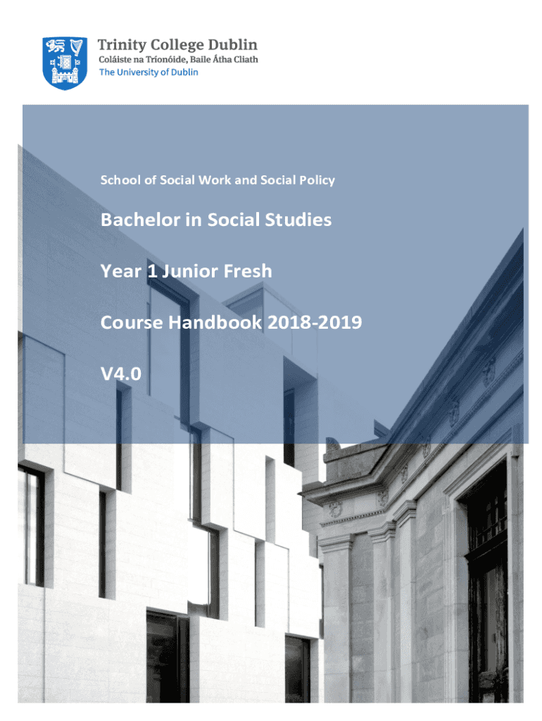School of Social Work and Social PolicyBachelor in Social Studies Year 1 Junior Fresh Course Handbook 20182019 V4.0Table of Contents Introduction ............................................................................................................................................