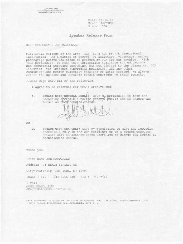 Event: LECTUREPlace:Speaker Release Form