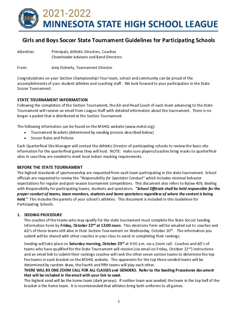 Girls and Boys Soccer State Tournament Guidelines for Participating Schools