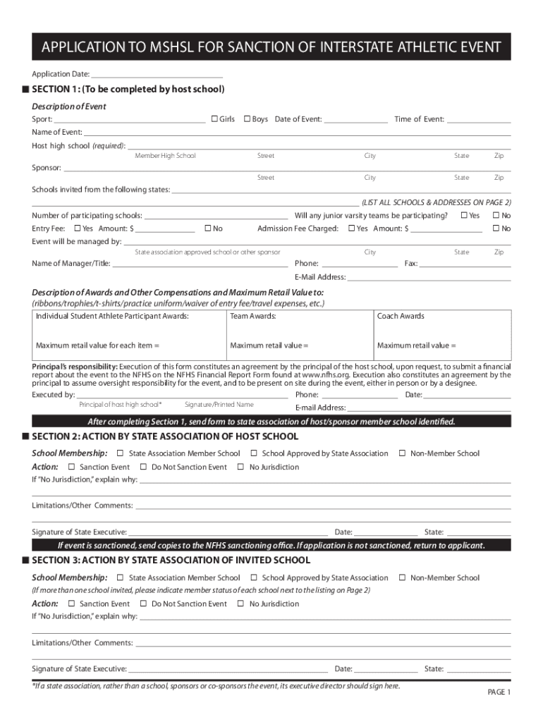 APPLICATION TO MS HSL FOR SANCTION OF INTERSTATE ATHLETIC EVENT