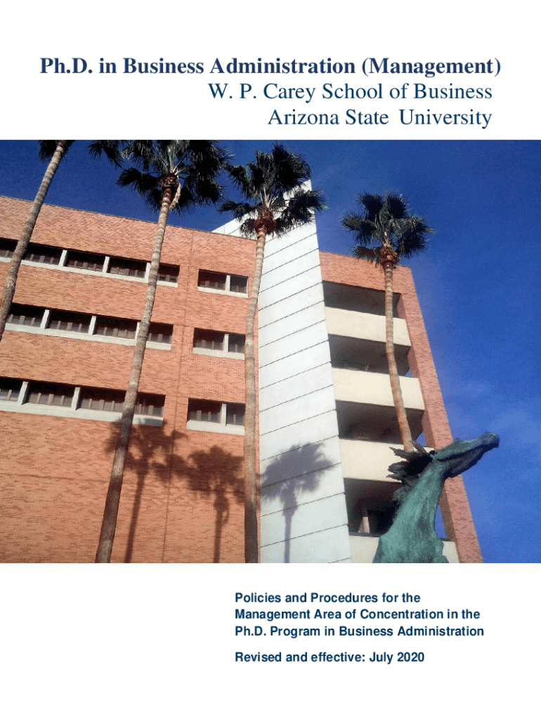 Ph.D. in Business Administration (Management) W. P. Carey School of Business Arizona State UniversityPolicies and Procedures for the Management Area of Concentration in the Ph.D. Program in Business