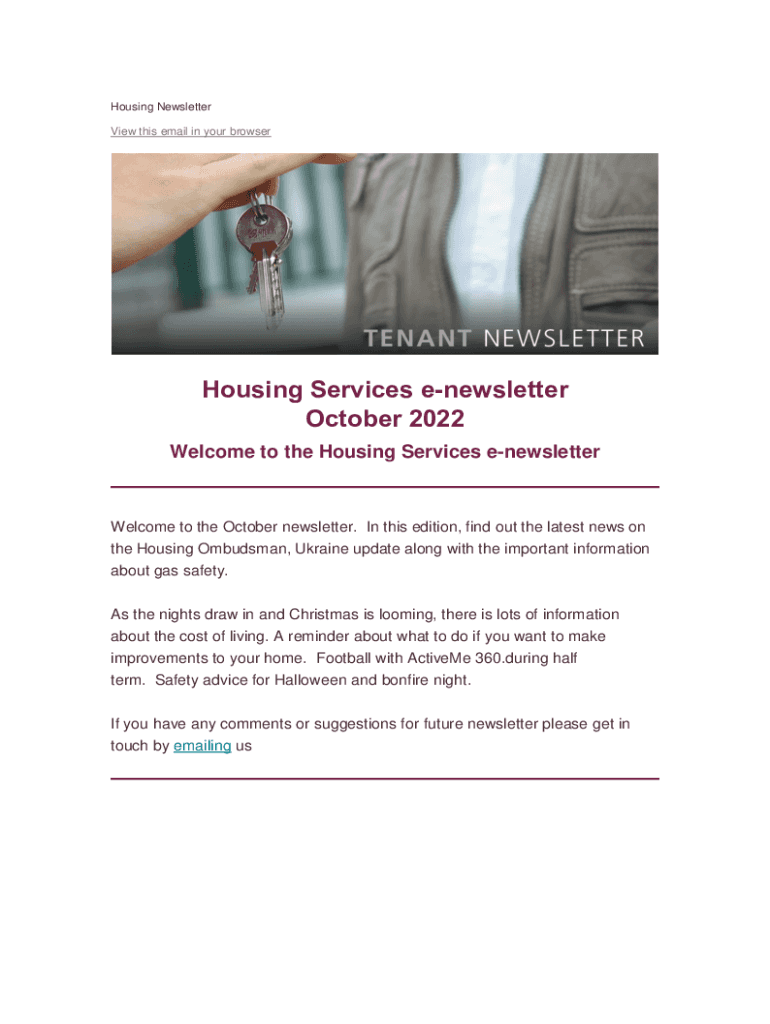 Welcome to the Housing Services enewsletterWelcome to the October newsletter. In this edition, find out the