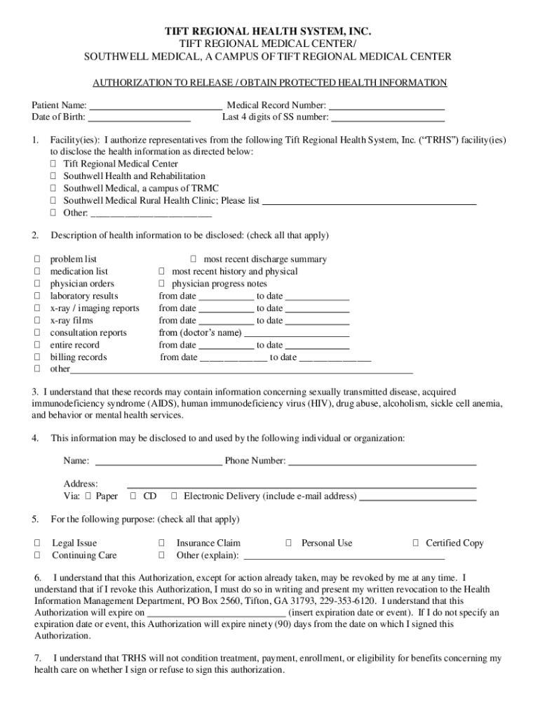 Patients who receive services at Tift Regional Medical Center are required to provide information for filing purposes.