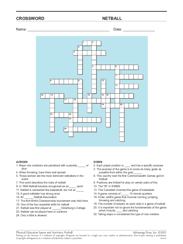 CROSSWORDNETBALLName: ___ACROSS 1. Major rule violations are penalized with a penalty ___ or shot 4. When throwing, have them well spread 5. These women are the most dominant retailers in the world