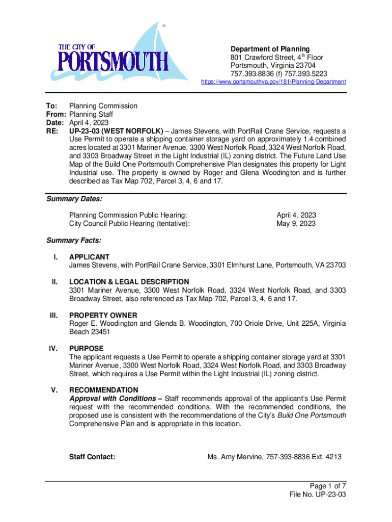 Department of Planning 801 Crawford Street, 4th Floor Portsmouth, Virginia 23704 757.393.8836 (f) 757.393.5223 https://www.portsmouthva.gov/181/PlanningDepartmentTo: From: Date: RE:Planning Commission