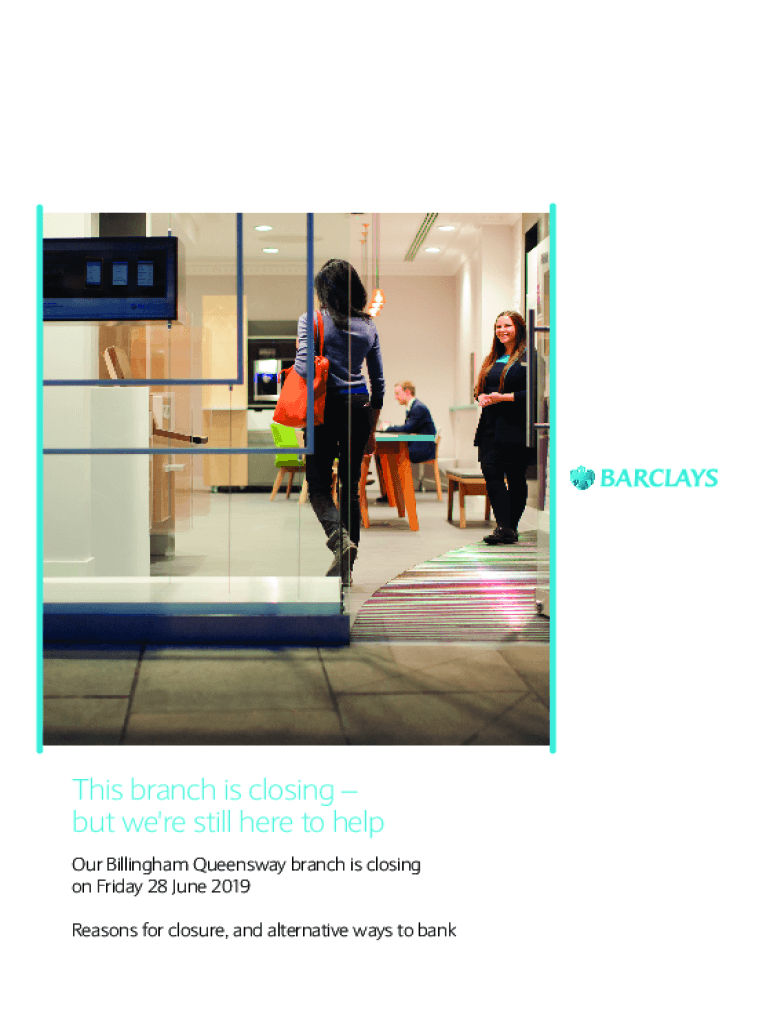 This branch is closing but we\'re still here to help Our Bellingham Queensway branch is closing on Friday 28 June 2019 Reasons for closure, and alternative ways to banks branch is closing, but your