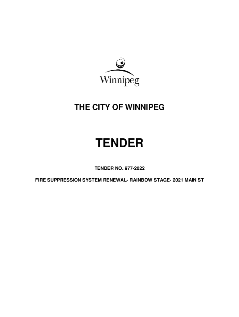 THE CITY OF WINNIPEGTENDER TENDER NO. 9772022 FIRE SUPPRESSION SYSTEM RENEWAL RAINBOW STAGE 2021 MAIN STT he is City of Winnipeg Tender No. 9772022Table of ContentsTemplate Version: 2022 12 31 Coast