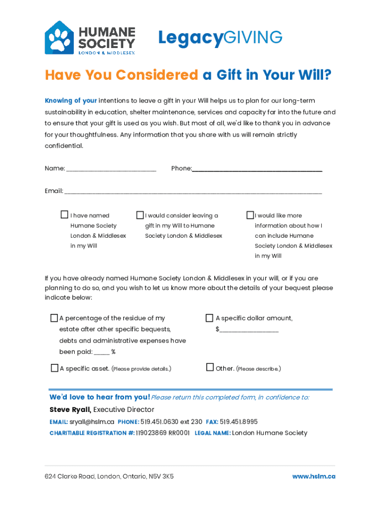 LegacyGIVING Have You Considered a Gift in Your Will? Knowing of your intentions to leave a gift in your Will helps us to plan for our long term sustainability in education, shelter maintenance, services